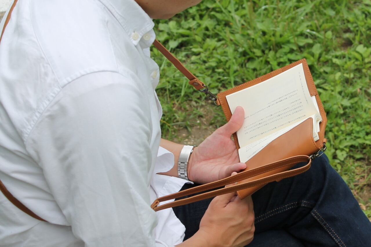 肩から掛けられるショルダーが付いているので、本が傷ついたり